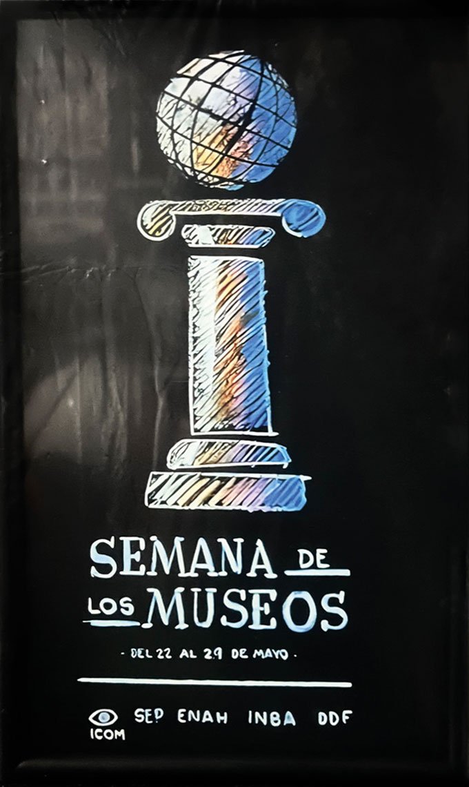 Cartel “Semana de los Museos”, diseñado por Javier Gutiérrez Espinosa (ca. 1990-1991), para el festejo del Día Internacional de Museos. Colección particular Yani Herreman.