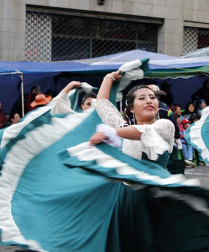 Entrada folklórica de Carnaval Jisk’a Anata 2024 en la ciudad de La Paz, Bolivia. Foto de Carlillasa, 11 de febrero de 2024. Wikimedia Commons (CC BY-SA 4.0).