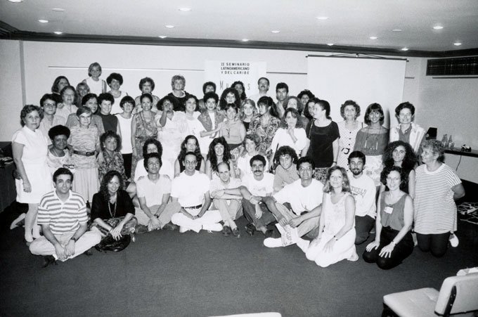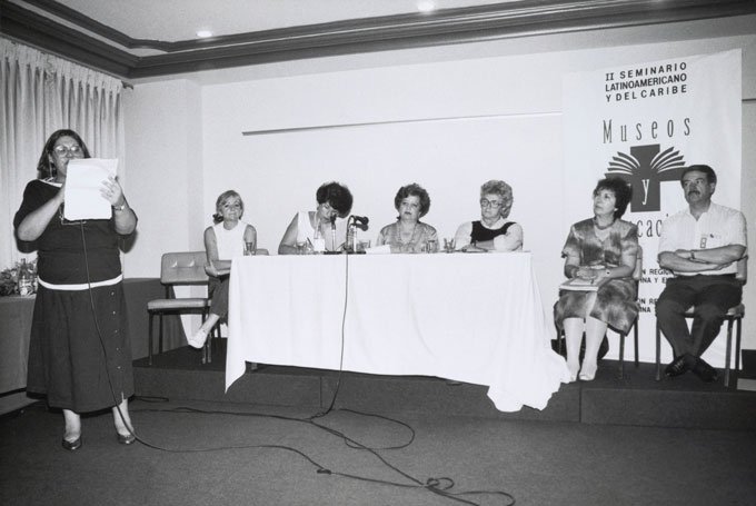 ES: II Seminario Latinoamericano y del Caribe “Museos y educación”’, Río de Janeiro, Brasil , 25 al 30 de abril 1993. Arriba: Magaly Cabral, Regina Márcia Tavares, Maria Tereza Iglesias, Lourdes Novaes, Julia Córdova-Gonzalez, Pedro Córdova y Lucia Astudillo Loo. Abajo: asistentes al seminario.