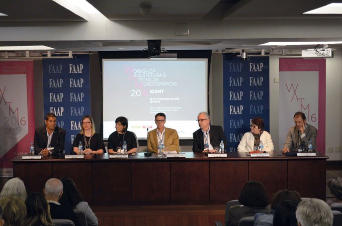 PT: Workshop Arquitetura e Técnicas Museográficas ICAMT/ICOM, 2016. Da direita para a esquerda: Marcos de Oliveira Costa, Beatriz Cavalcanti Arruda, Renata Motta, Marcelo Mattos Araújo, Carlos Roberto Ferreira Brandão, Maria Ignez Mantovani e Jean Hilgersom.