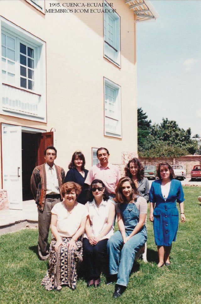Desde sus inicios, uno de los objetivos prioritarios de icom Ecuador ha sido la generación de conocimiento local en torno a la museología y el patrimonio. Las primeras publicaciones estuvieron enfocadas en la divulgación de memorias de encuentros nacionales de museos y en la sistematización de experiencias museales relevantes, sentando así las bases para una reflexión crítica desde el contexto ecuatoriano. Uno de los hitos fundacionales más importantes del comité fue la realización del I Seminario de Museología y de la Reunión del entonces Secretariado Permanente del icom para los países de América Latina y el Caribe (que cambió su nombre por icom lac en 1989, en La Haya), ambos llevados a cabo en 1988 en la ciudad de Cuenca. A este encuentro asistieron el entonces secretario general del icom, Patrick Cardon, y la secretaria del Secretariado Permanente, Yani Herreman. El evento reunió a destacados expertos latinoamericanos y consolidó, por primera vez en el país, una plataforma de diálogo museológico de alcance internacional. En ese marco, se presentó el libro El museo como instrumento de aprendizaje, de Lucía Astudillo, una obra pionera en el campo de la educación museal en Ecuador. Asimismo, se rindió homenaje al reconocido museólogo Hernán Crespo Toral, exdirector de los Museos del Banco Central del Ecuador. Como resultado de las conversaciones sostenidas durante este encuentro, y por iniciativa de Lorena San Román (icom Costa Rica), se respaldaron las gestiones que posteriormente llevaron a la declaratoria de Cuenca como patrimonio cultural de la humanidad por parte de la Unesco en 1999.