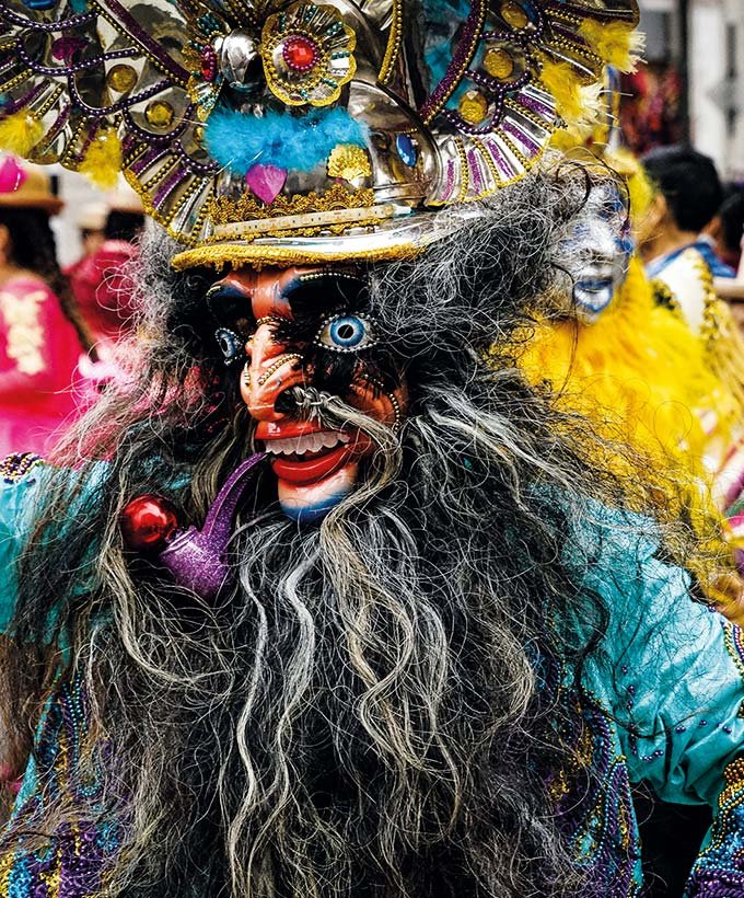 Persona en traje de plumas verdes, azules y amarillas. Foto de Federico Scarionati, 14 de enero de 2021. Unsplash